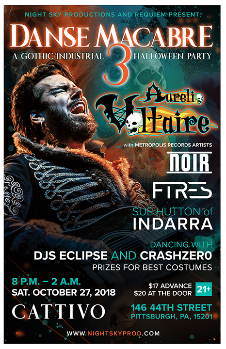 Aurelio Voltaire will be supported by three different acts on Metropolis Records. This is not a tour; each artist on the bill was hand-picked to enhance your Halloween, and each is traveling separately to Pittsburgh just for this show.