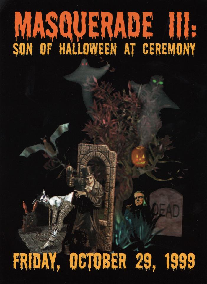 - Fri., Oct. 29, 1999 – “Masquerade 3: Son of Halloween at Ceremony” feat. The Razor Skyline, Bella Morte, Tapping the Vein, & Spaz @ Club Laga [Flyer Front] [Flyer Back]